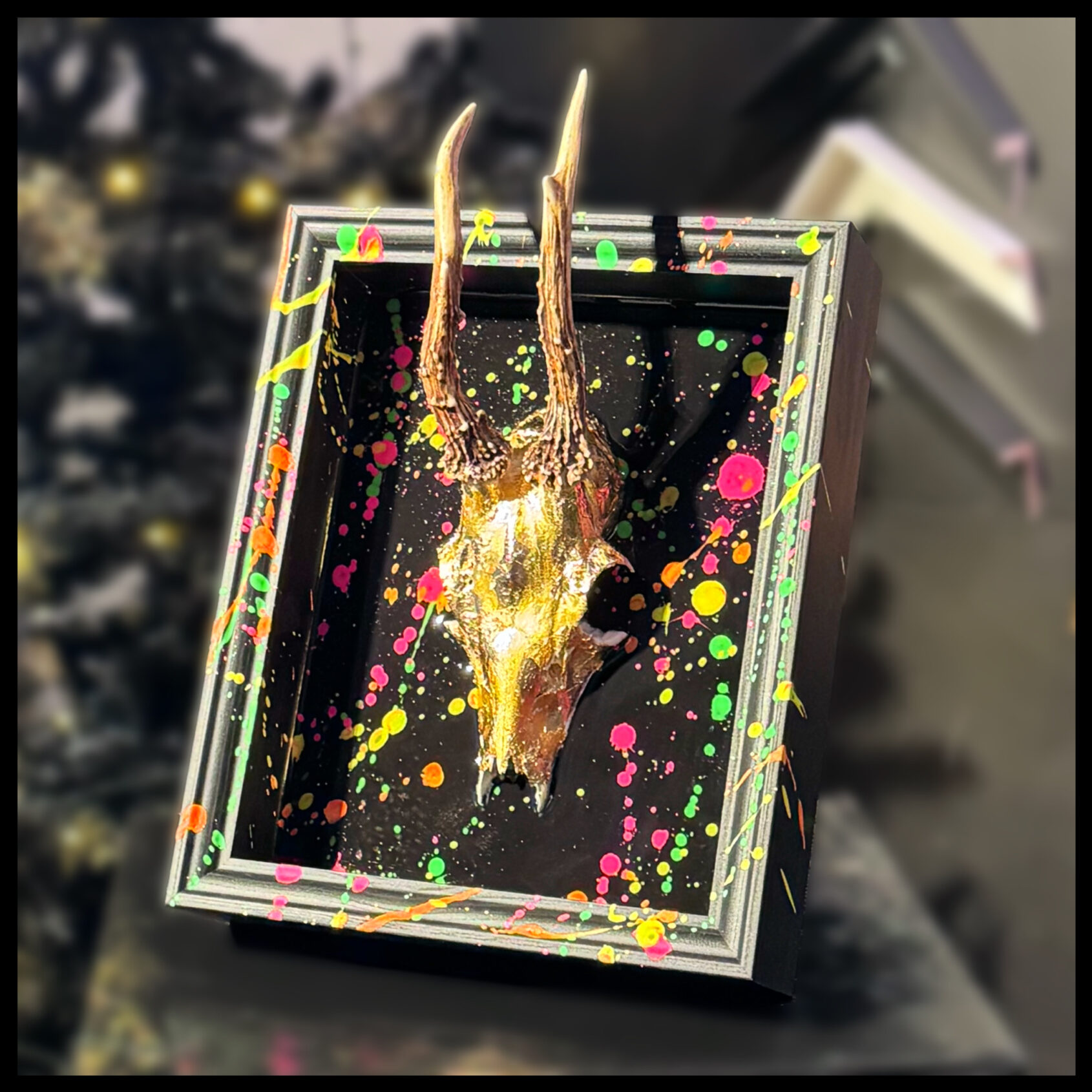Das klare Resin hält das Geweih fest, fast wie eingefroren. Das Gold setzt bewusste Akzente – nicht laut, sondern gezielt.